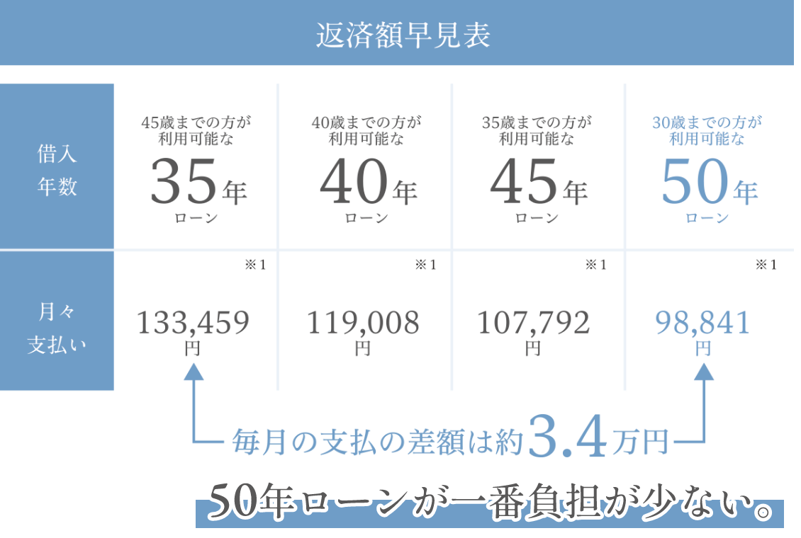 毎月の支払負担を軽減最長50年の長期返済で月々の負担を大幅に軽減。
