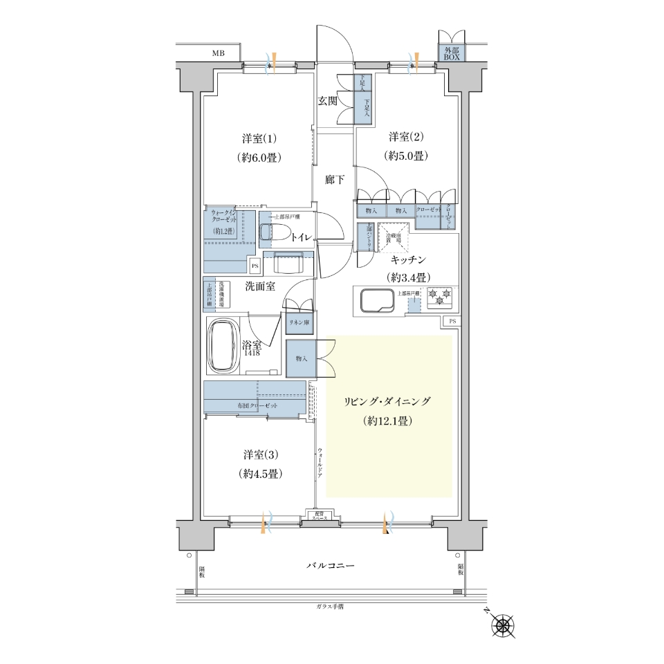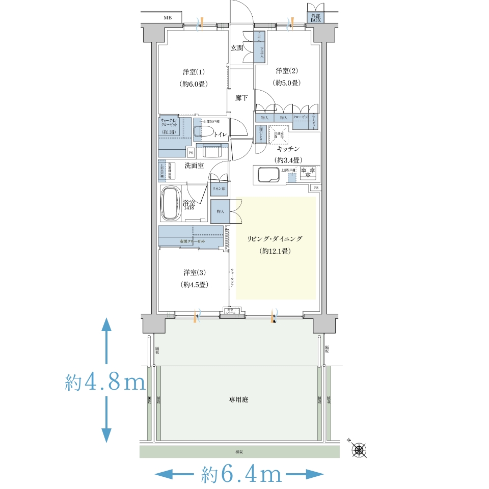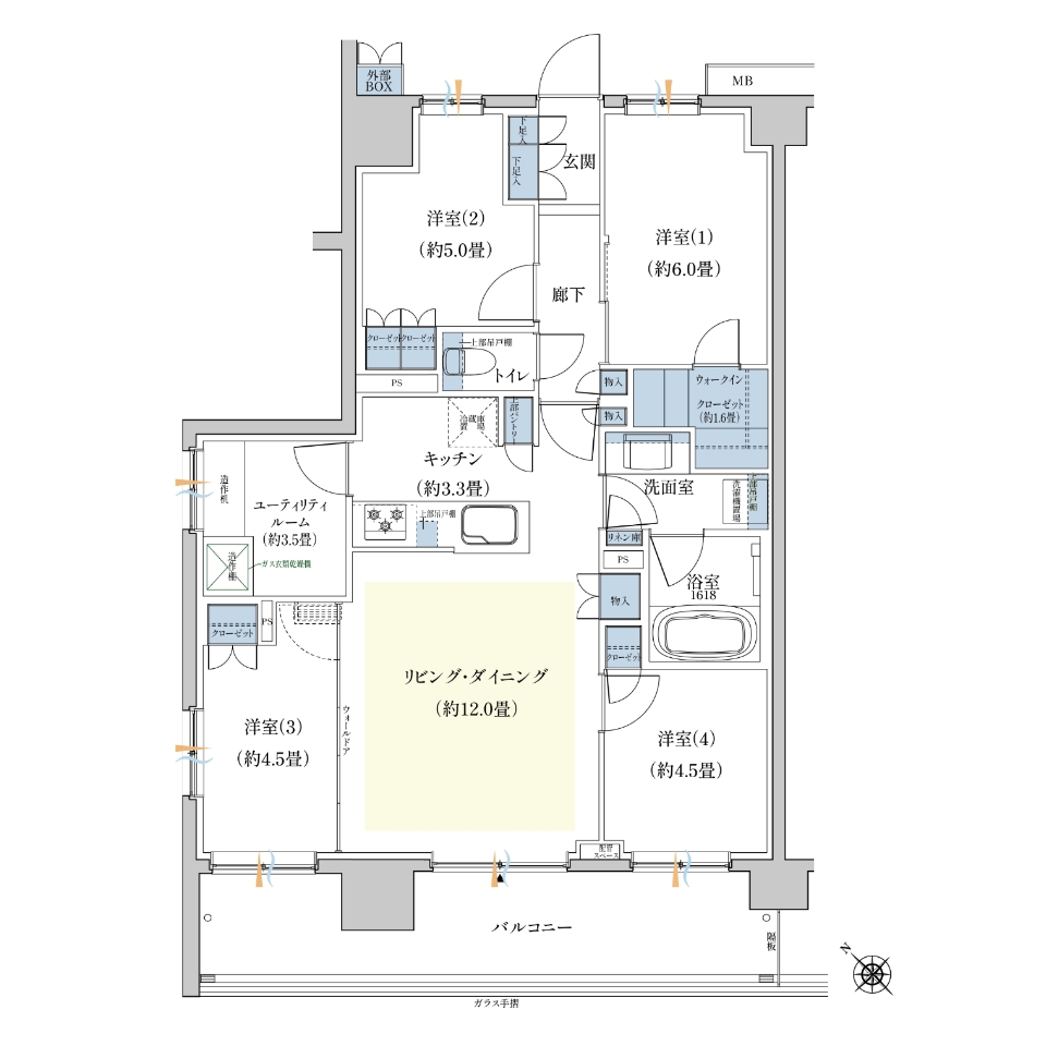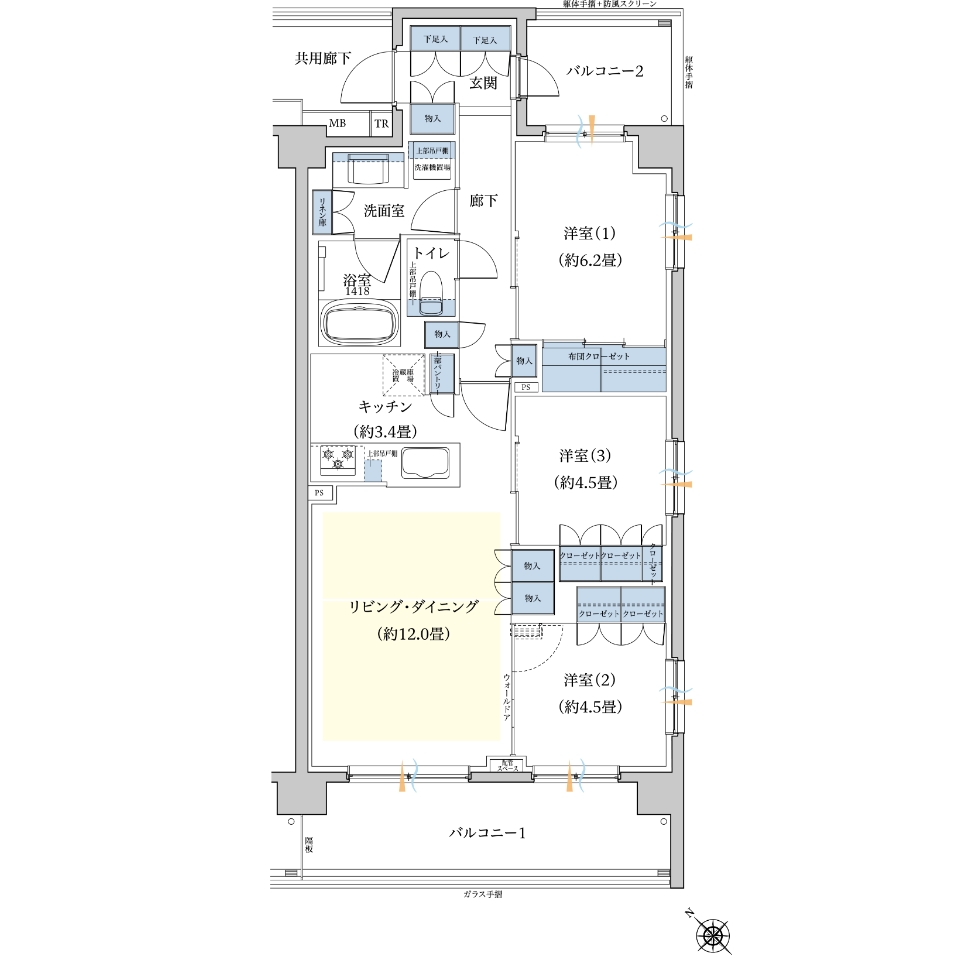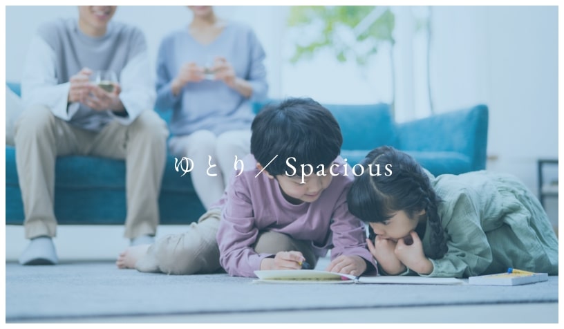 4LDK最大86㎡超伸びやかな暮らしを演出するために、平均専有面積73㎡※1超で設計。最大4LDKは86㎡超の広さを実現。ゆとりを大切に考えました。