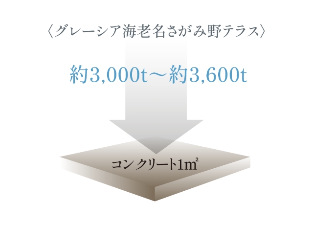 建物の主要構造部分には、 1㎡あたり約3,000t〜約3,600tもの圧力に耐える強度のコンクリートを採用しています。